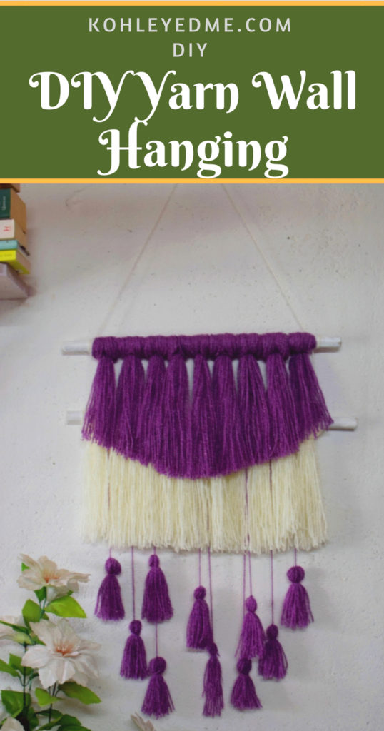 At last, hang the tied dowels on the wall and start snipping the ends to clean up any loose ends. I wanted to keep the white yarn in a straight cut and the plum colored yarn in a deep V cut. It shows the colors on the layer beneath it. So, that’s it! Your DIY Yarn Wall Hanging is ready!